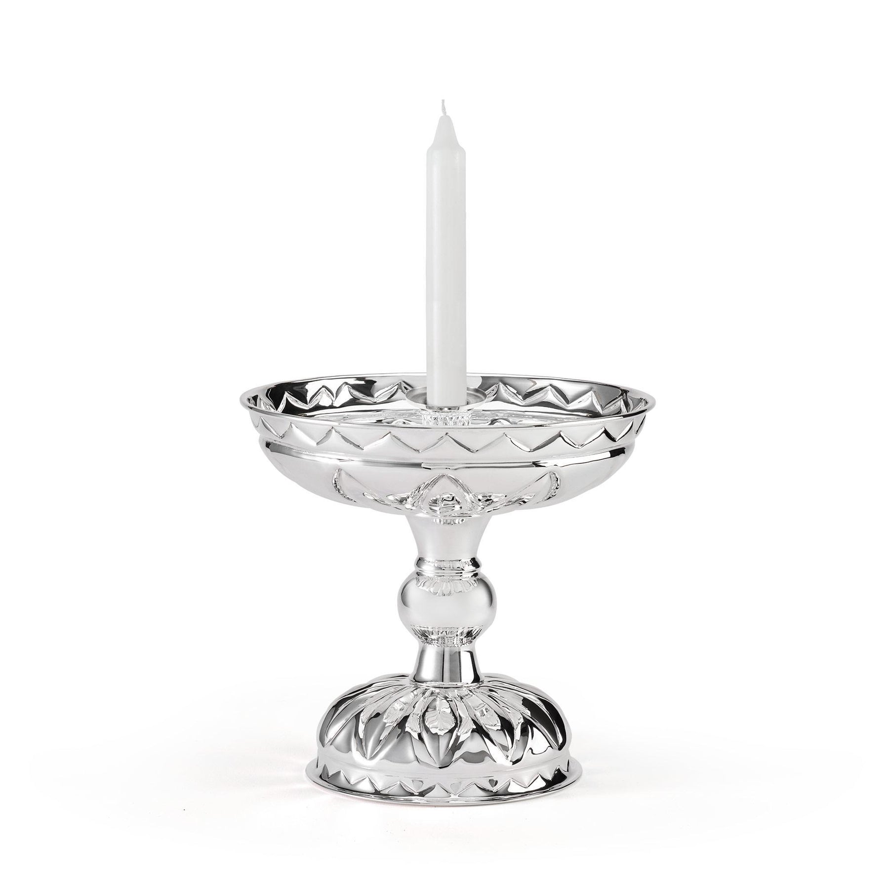 Offered as an additional/replacement set for the original candle inserts supplied with the Seferî Day & Night tray, jardinière, Dome serving bowl, 3 tier serving tray and wall mirror, this set of two silver-plated pieces fits into the designated holders featured on these designs and functions as a candle insert. Material: silver-plated brass. Made in Turkey.