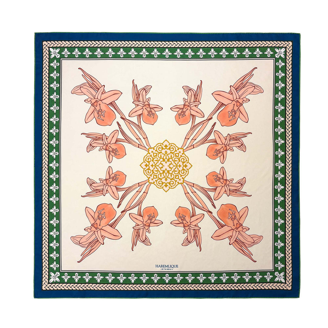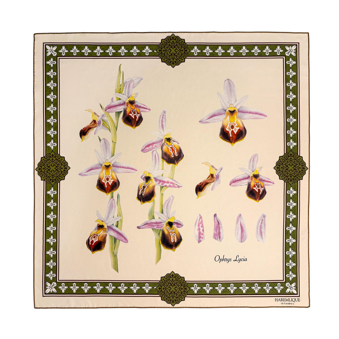 This special scarf is inspired by the Lycian orchid, a rare and delicate species that grows only in certain regions of Turkey. Named after ancient Lycia, which means “Land of Light,” this unique plant is now under threat of extinction. The Mediterranean Conservation Society is working to ensure the survival of the Lycian orchid in nature through seed collection and germination efforts carried out in laboratory conditions.