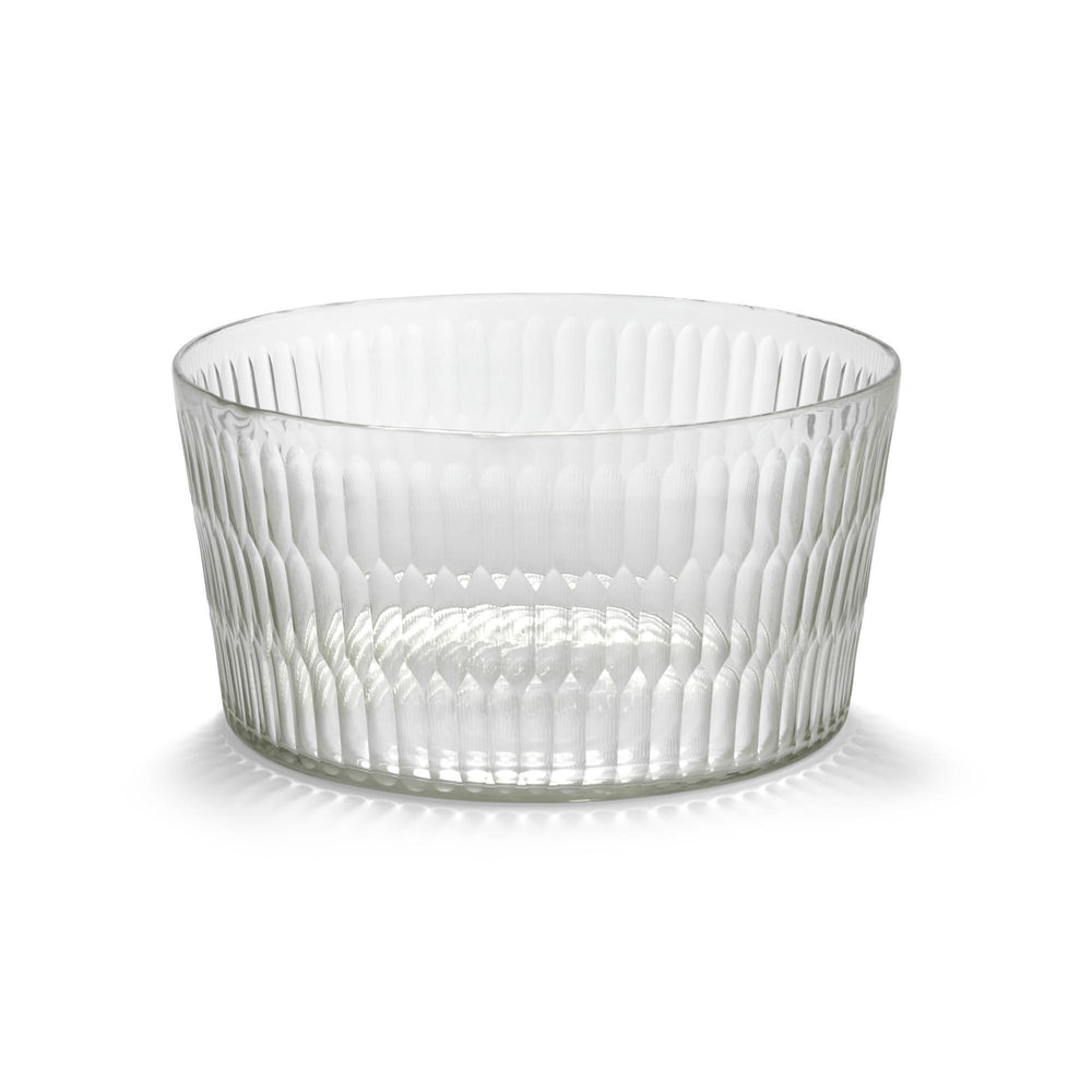 You can use this multifunctional glass design with a graphic pattern as both a vase and a candle holder.