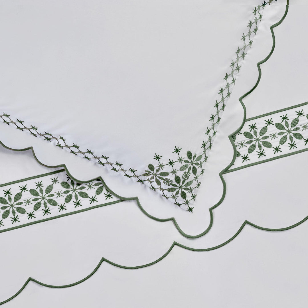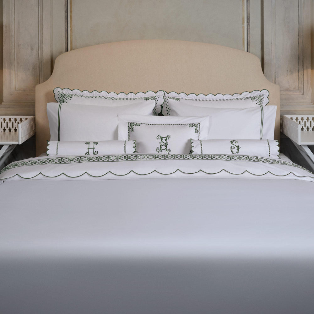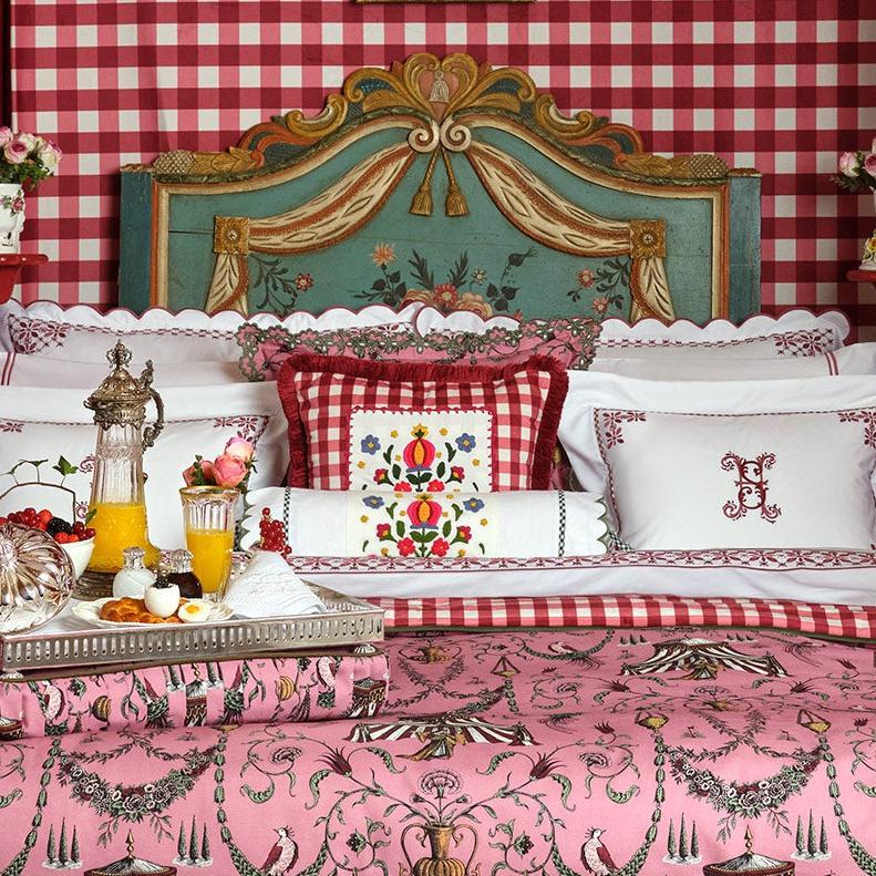 The Seferî Collection's bed linens offer designs inspired by the textures, colors, and symbols of diverse cultures. Fabrics printed with Seferî pattern, modernized tile flowers, and graphic accents of lines add a poetic touch to bedroom decor.