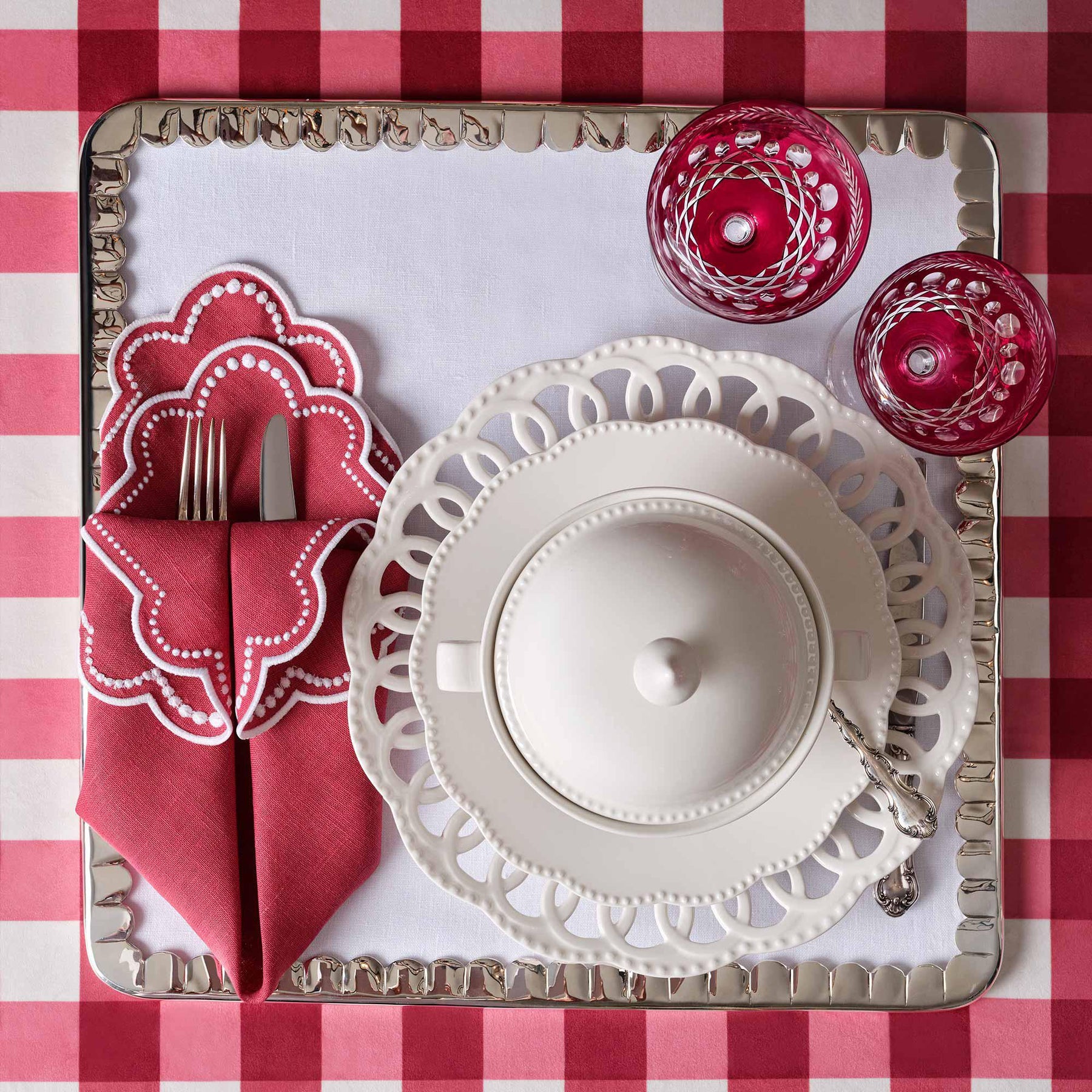 Designed to be used with the silver-plated Seferî placemat frame, this linen cover supports a refined and elegant table presentation. It slips easily over the frame’s plexiglass panel and, when completed with the frame, creates a cohesive and well-composed look on the table. Material: 100% linen. Made in Turkey.