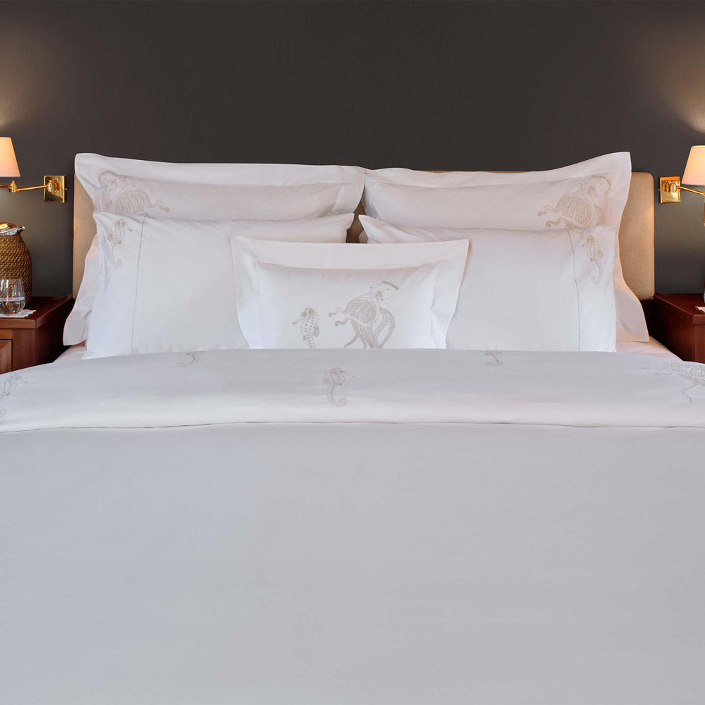 Carrying a chic embroidery created with seahorse and octopus motifs this sham is a stylish addition to your bedding style. 100% finest combed cotton. Standard shams are packaged as a set of 2. Made in Turkey.