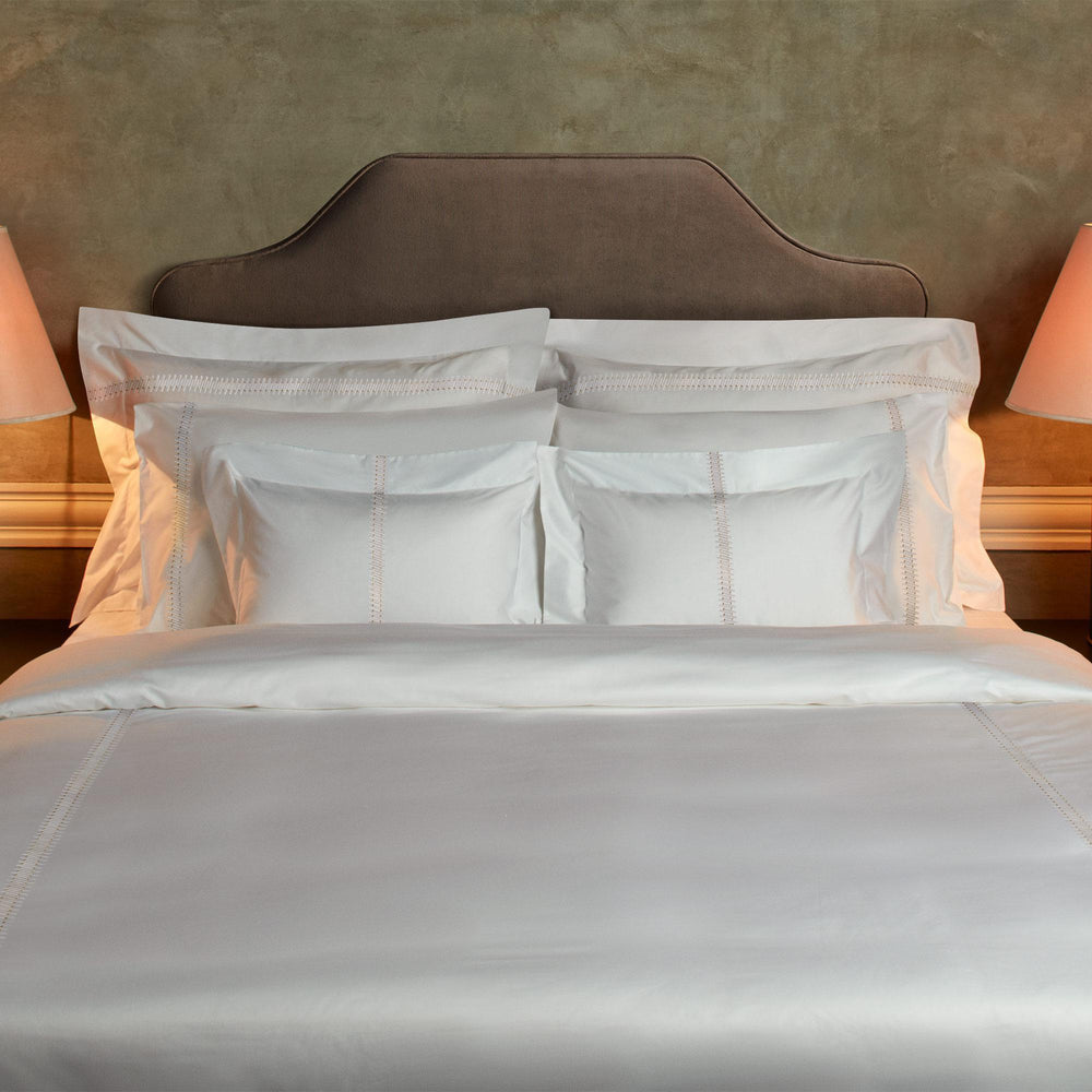 Crafted with a modern touch, this pillowcase boasts a captivating design of embroidery, where diagonal short and long lines converge to create an eye-catching look.Standard pillowcases are packaged as a set of 2. 100% finest combed cotton sateen. Made in Turkey.